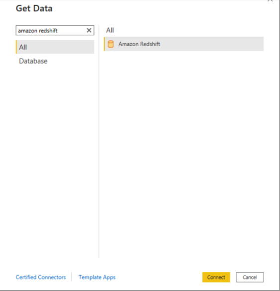 Alternative Method: If you choose to use the Amazon Redshift option within Power BI, search for Redshift and follow the system prompts.